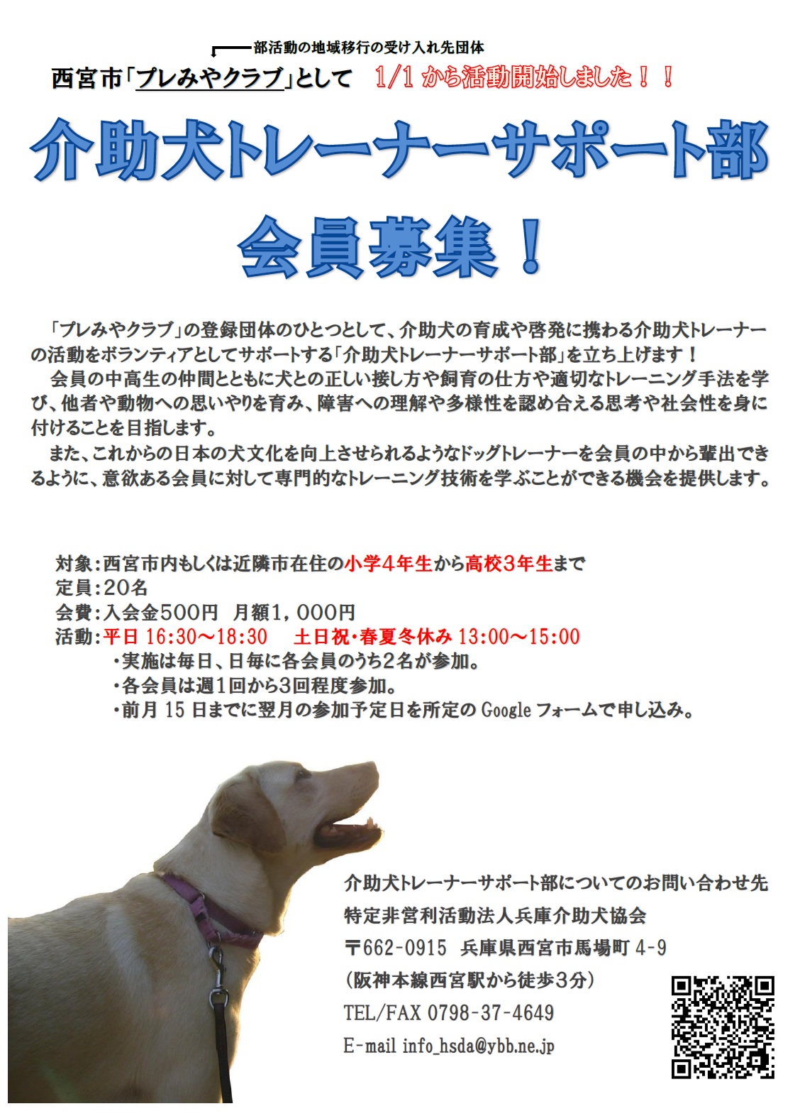 兵庫介助犬協会(兵庫事務所)0798-37-4649